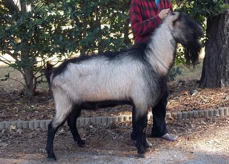 Spike is a stylish buck with a spunky attitude. His dam has an excellent udder, and his sire produced many fine does, including the 2014 Alpine National Champion, Iron-Rod STB Shelby. So far he is doing a good job of adding body to his kids and correcting front legs.